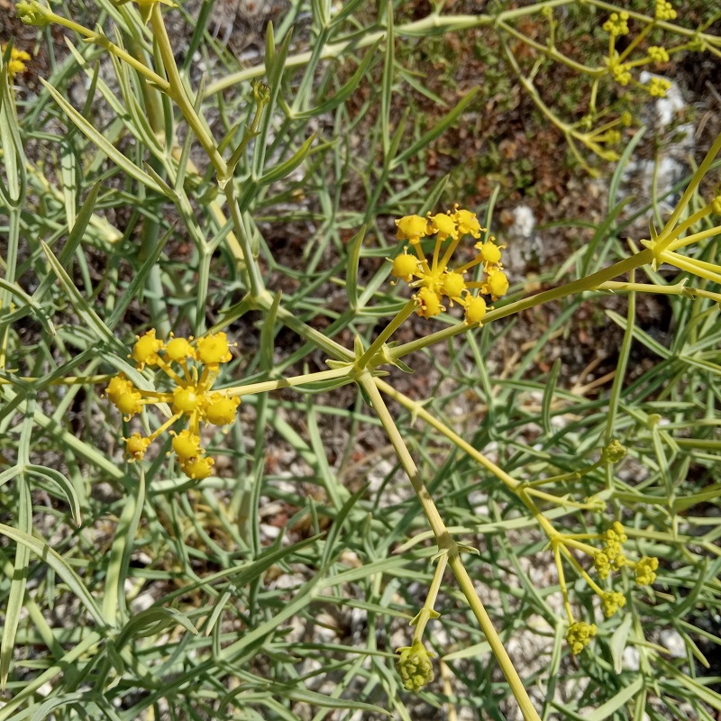 It is the first of the two Cachrys species found in Cyprus. It is indigenous and near-endemic (it also exists in Anatolia). It is encountered in hilly and mountainous southern Cyprus at an altitude of 25-1225 metres. It grows up to 1.5 metre and blooms mostly in June and July. It has very characteristic leaves, coarsely dissected and thick, 15-80 mm long and 3-8 mm wide, that make it stand out from the other Apiaceae.