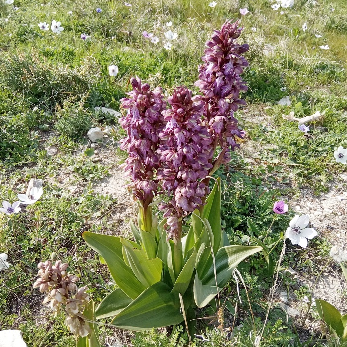 Very common plant in Cyprus, with intense, pleasant aroma. It appears in February and its color varies from pinky-white to dark lilac. It is also known as “Barlia robertiana”. It grows in uncultivated land, preferably dry.